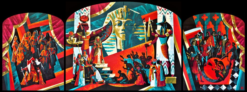 La parte sinistra del mio trittico è l'opera "Macbeth", in cui Verdi interpreta un usurpatore che schiavizza il popolo e versa sangue per raggiungere il potere. Spesso, le prime delle prime opere si concludevano con rivolte contro gli invasori austriaci. La musica di Verdi era permeata di spirito rivoluzionario e infiammava il popolo.